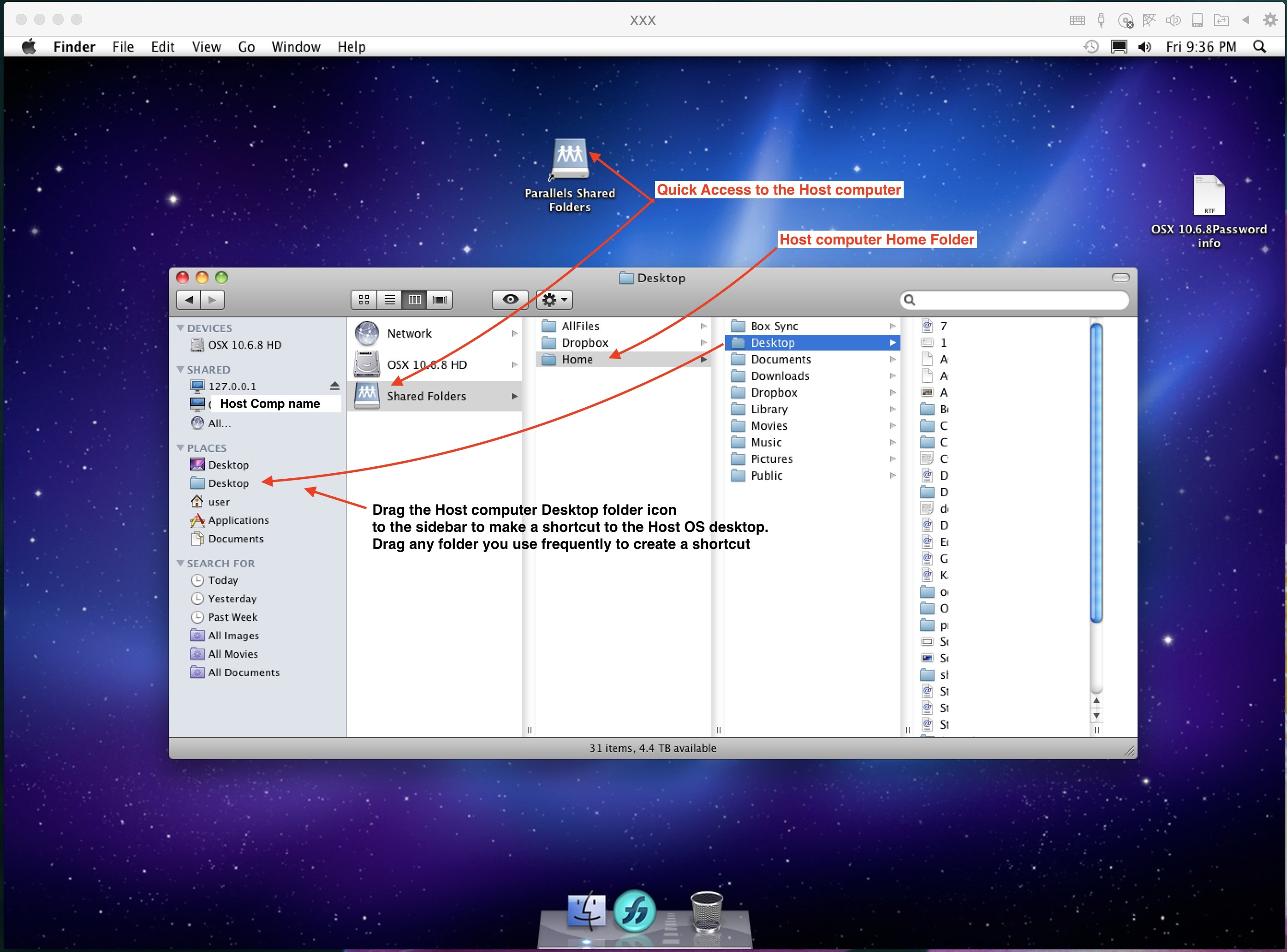 Within the Guest OSX there is a folder on the Desktop called ‘ Parallels Shared Folder’